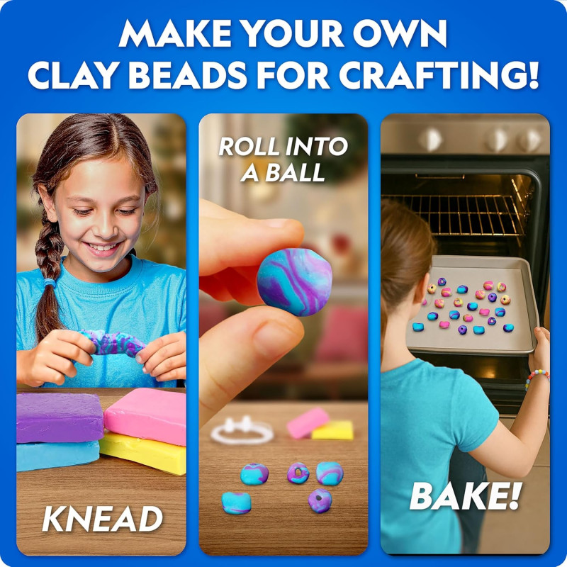ВСЕ У КОМПЛЕКТІ - ніяких додаткових матеріалів не потрібно! У цьому наборі є все необхідне для створення більш ніж 24 готових прикрас, включаючи шнур, глину, підвіски, намистини, інструменти та прості інструкції.