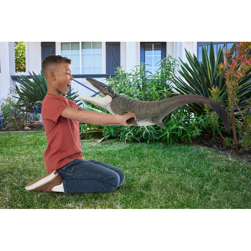 Величезна фігурка! Перенесіть у свій дім захоплюючі моменти та гострі відчуття з «Парку Юрського періоду: Відродження» з цією гігантською фігуркою мозазавра довжиною 94 см.