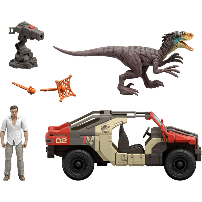 Збери свій світ Юрського періоду! Цей набір з машиною, людиною і динозавром стане чудовим доповненням до колекції будь-якого фаната. Підходить для дітей від 4 років. Бічні дзеркала на машині вимагають одноразового складання.