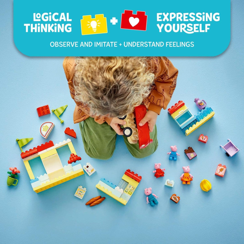 Весела гра-шопінг для дівчаток і хлопчиків від 2 років і старше — допоможіть дітям дошкільного віку відтворити сцени з їх улюбленого телешоу за допомогою набору LEGO DUPLO «Супермаркет Свинки Пеппи»
