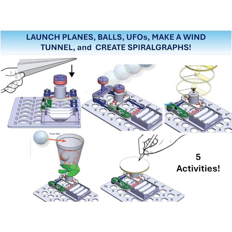 Проста конструкція та універсальність використання FLIGHT DECK забезпечать годинник захоплюючої гри завдяки п'яти унікальним проектам. Діти зможуть зібрати схеми для запуску паперових літачків, літаючих тарілок та м'ячів. Додаткові проекти включають створення художніх візерунків на колесі, що обертається, і вивчення атмосферного тиску шляхом левітації м'ячів над вентилятором.