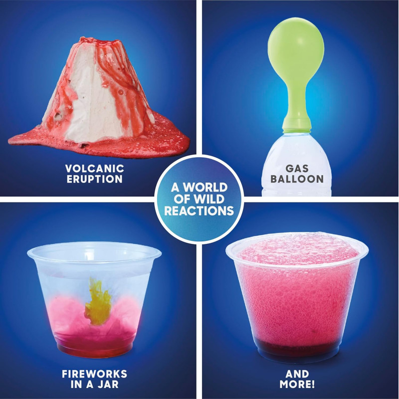 ✔ ВКЛЮЧАЄ ІНСТРУМЕНТИ ТА ІНГРЕДІЄНТИ — У комплект входять пробірки, харчовий барвник, форма для вулкана, лимонна кислота, суміш для слайму, кристали, що лопаються, та багато іншого для створення домашньої наукової лабораторії та проведення захоплюючих експериментів.