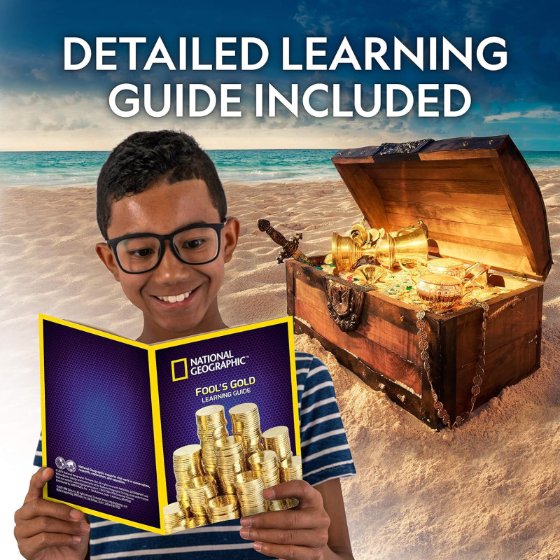 ЗНАХОДІТЬ НЕВЕРІЙНИЙ ПІРИТ – Знайдіть справжні зразки піриту в кожному злитку у формі золотого зливка з набору і дізнайтеся більше про золоту лихоманку та «золоту дурнів» з повнокольорового навчального посібника.